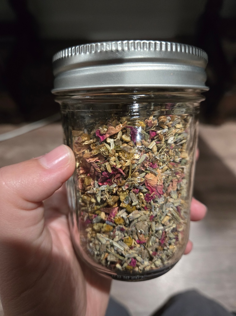 One of the suggested assignments for my class was to make a solution or original herbal tea blend. Since I have already played around for years with herbal tea blends almost entirely for the purposes of sleep, I overdelivered and ended up with 4 original blends, which I am excited to present here for the first time: